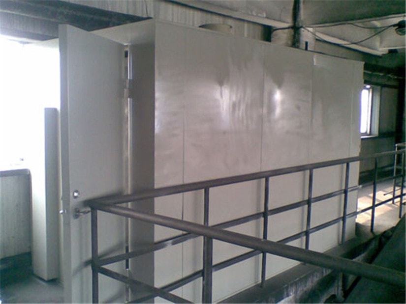 作為一種常規(guī)的噪聲控制方法,靜音室廣泛應(yīng)用于隔離車間噪聲,常見的有固定式和活動式兩種。本項目中采用活動式結(jié)構(gòu)。結(jié)構(gòu)上應(yīng)不影響場地布置與生產(chǎn)操作,容易拆裝和可觀察車間生產(chǎn)情況等。